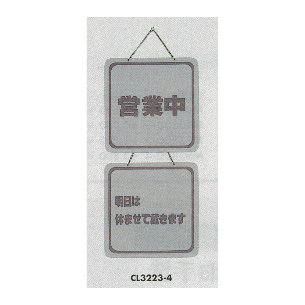 表示プレートH ドアサイン 両面 パールグレー 表示:営業中⇔明日は休ませて… (CL3223-4)