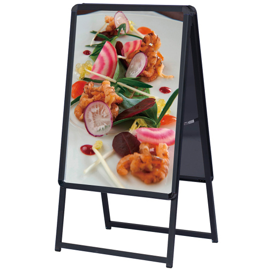 - 業界標準のA型看板がお求めやすい価格で登場! 飲食店から大型店舗などあらゆる場所で大活躍。 しかも屋外使用が可能です。