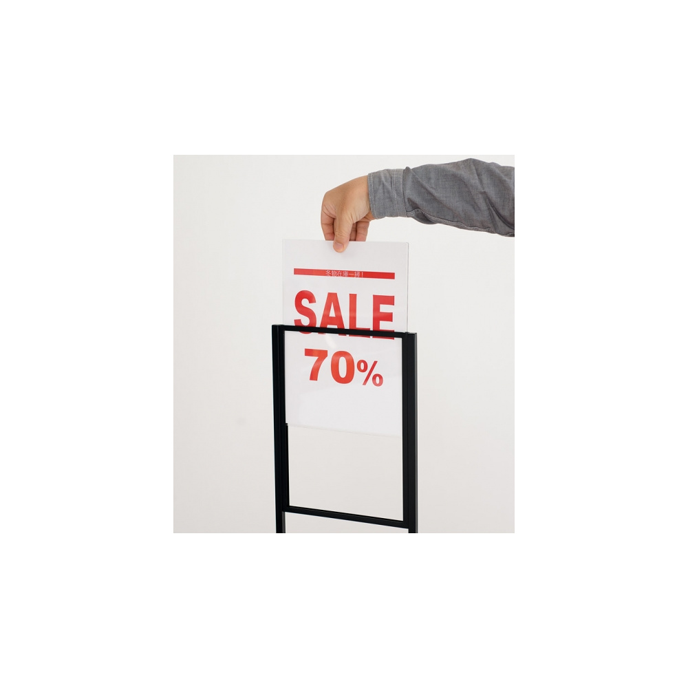 - 転倒の可能性がある為、屋外での使用は避けてください。掲示物は普通紙程度の厚みの用紙に適合します。枠有りの為、掲示物の外周が5mmほど隠れます。