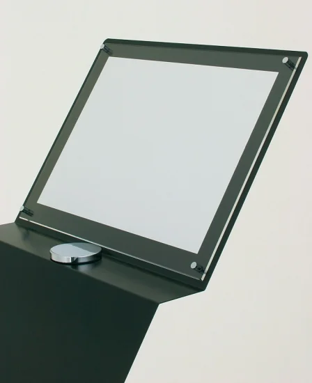- 掲示物は面板についているポピック(化粧金具ビス)を外し、アクリル面板の間に挟んで掲示してください。