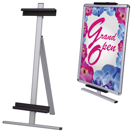 全高1m以下のロータイプアルミイーゼル。人目をさまたげず、情報をアピールできます