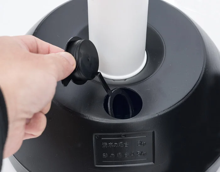 注水式。キャップにストッパーが付属し、フタの紛失を防ぎます