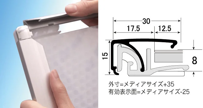 4辺開閉式のポスターフレームです。