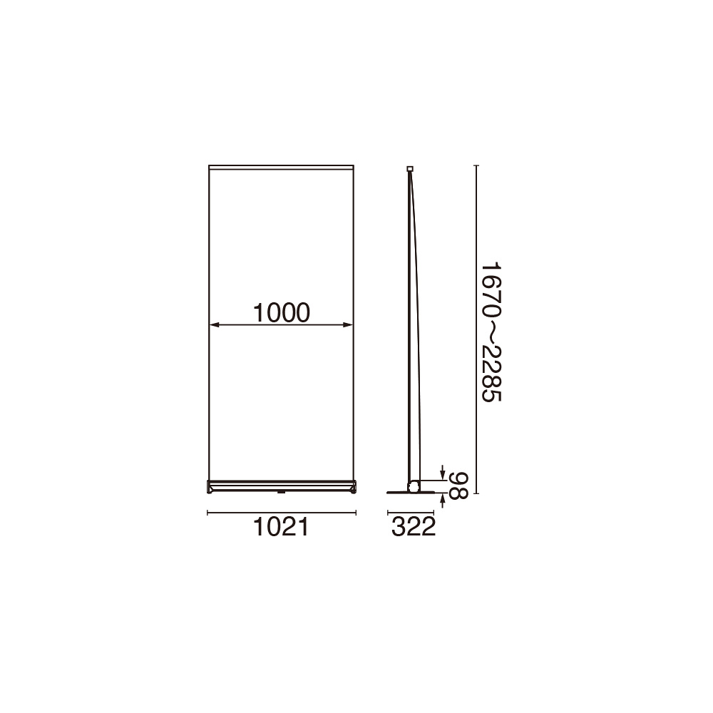 - バナーサイズは幅1メートル、高さを1605~2230mmまで変えることが出来ます。