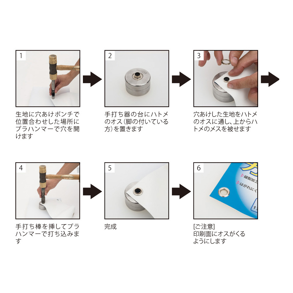 - <ハトメ加工の流れ> ※部材はそれぞれご用意ください