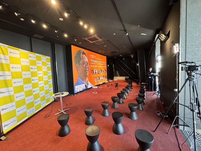 - ロゴマーク等を市松模様にデザインして、記者会見などのインタビューのバックボードとしてもご利用いただけます。