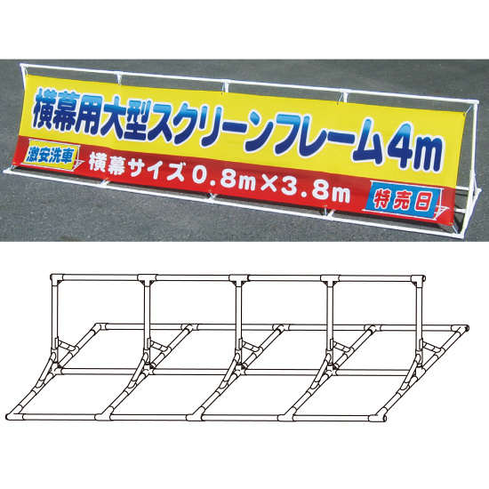 屋外用大型スクリーンフレーム 45型用 印刷代・ハトメ加工込 材質:防炎ターポリン(W3800×H800)・防炎シール付 (※本体別売) |