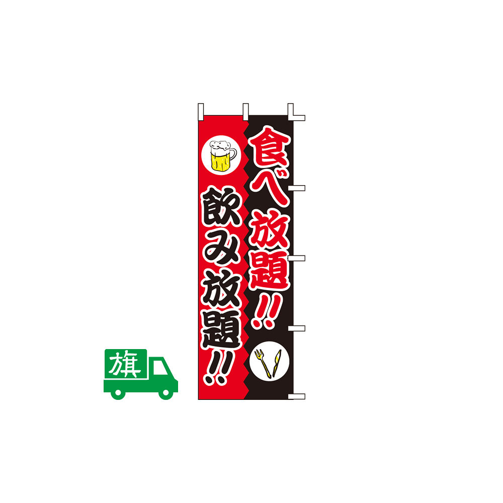 商品説明:のぼり旗 食べ放題!飲み放題!