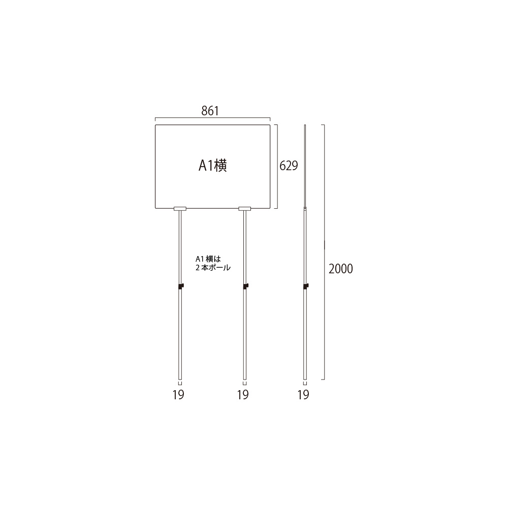 手持ち看板 プラカードポール A1サイズ 白板タイプ (PCPAP-A1Y)