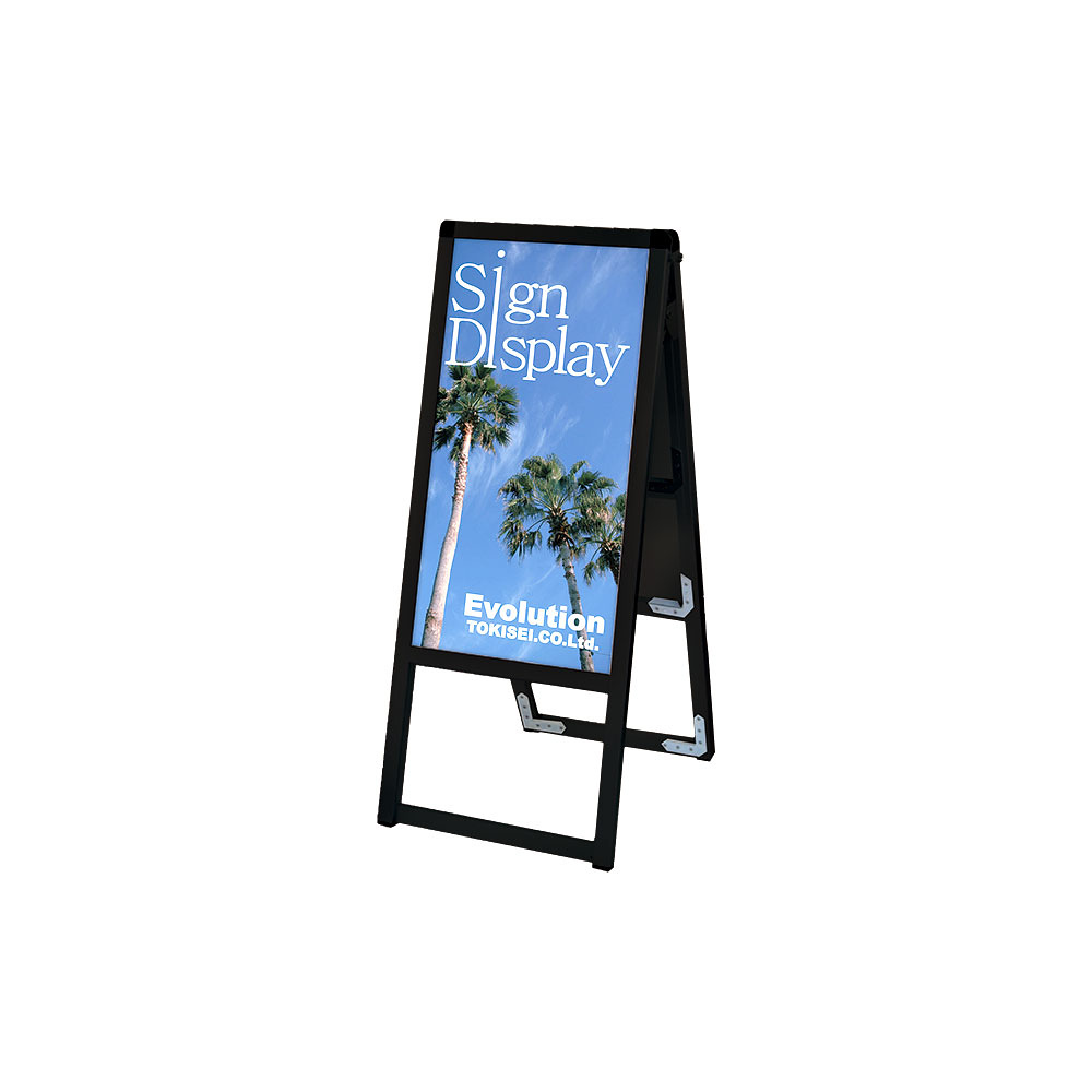 - フレーム幅が22mmと細くスッキリとして見栄えのスタンダードなA型看板。MADE IN JAPANの安心の日本製で耐久性も抜群。