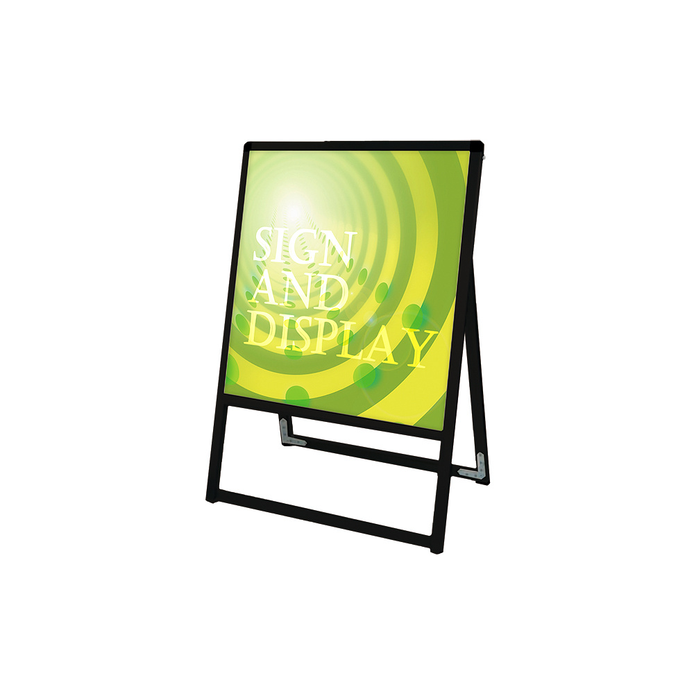 - フレーム幅が22mmと細くスッキリとして見栄えのスタンダードなA型看板。MADE IN JAPANの安心の日本製で耐久性も抜群。
