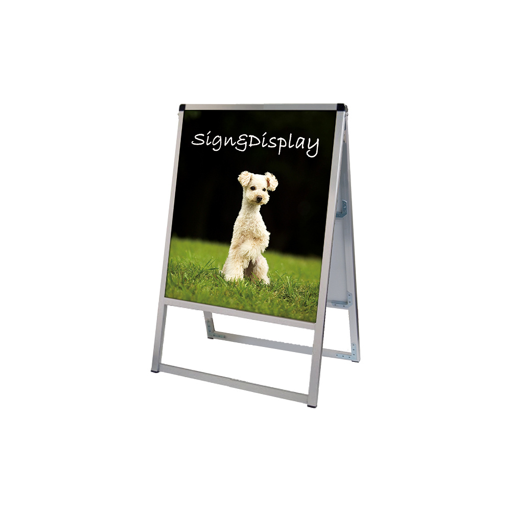 - フレーム幅が22mmと細くスッキリとして見栄えのスタンダードなA型看板。MADE IN JAPANの安心の日本製で耐久性も抜群。