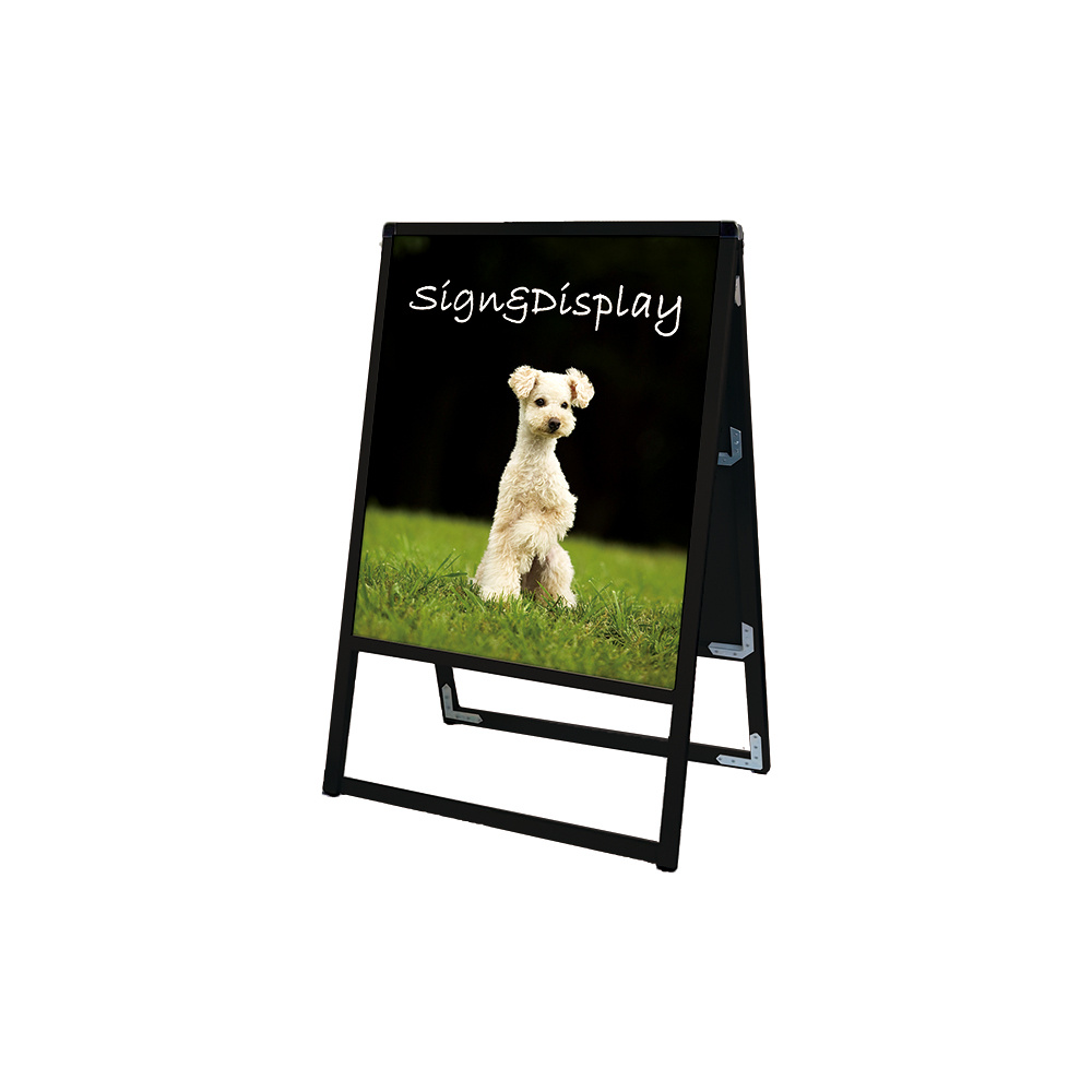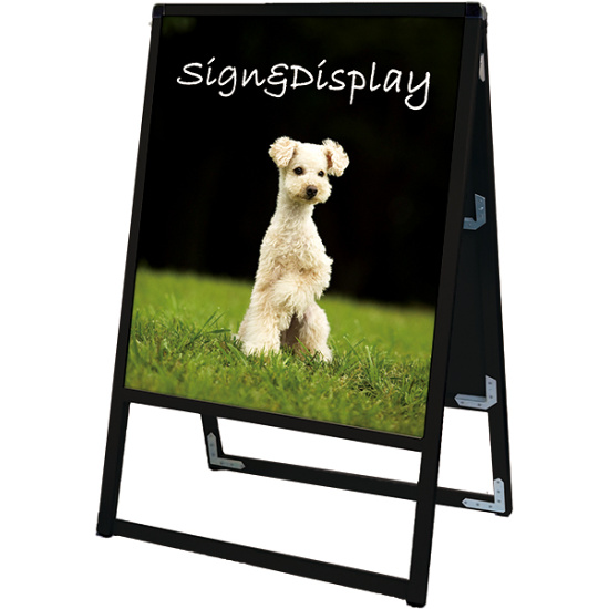 - フレーム幅が22mmと細くスッキリとして見栄えのスタンダードなA型看板。MADE IN JAPANの安心の日本製で耐久性も抜群。