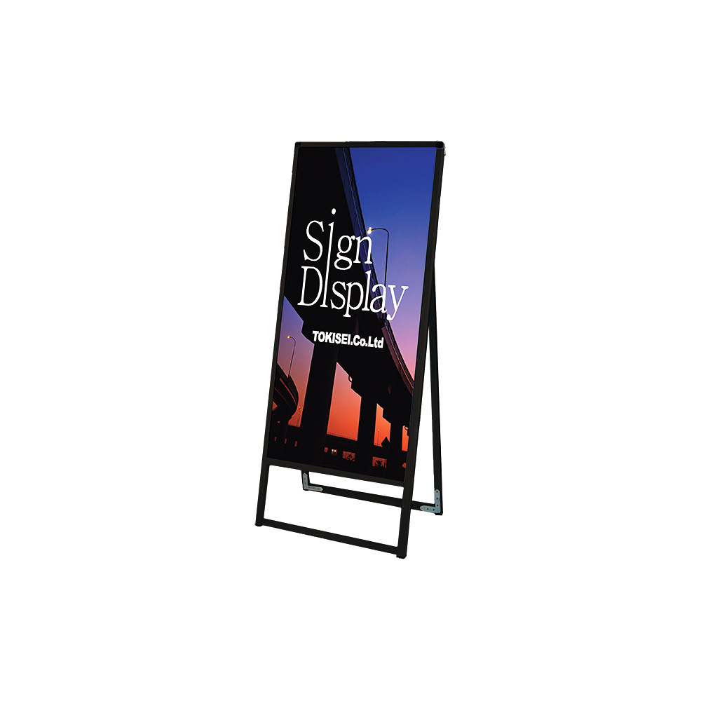 - フレーム幅が22mmと細くスッキリとして見栄えのスタンダードなA型看板。MADE IN JAPANの安心の日本製で耐久性も抜群。