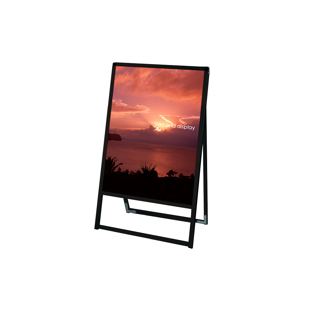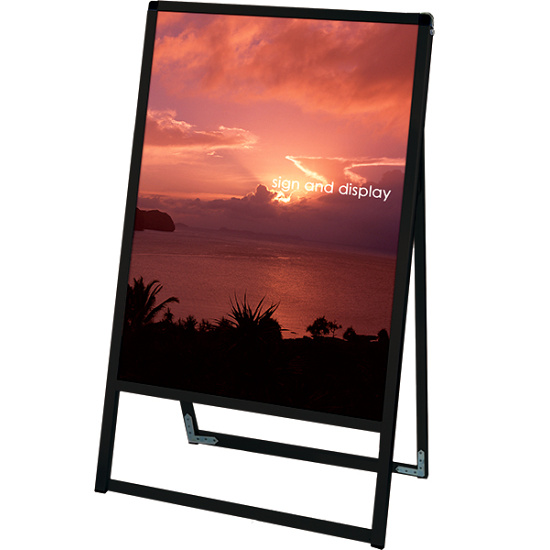 - フレーム幅が22mmと細くスッキリとして見栄えのスタンダードなA型看板。MADE IN JAPANの安心の日本製で耐久性も抜群。