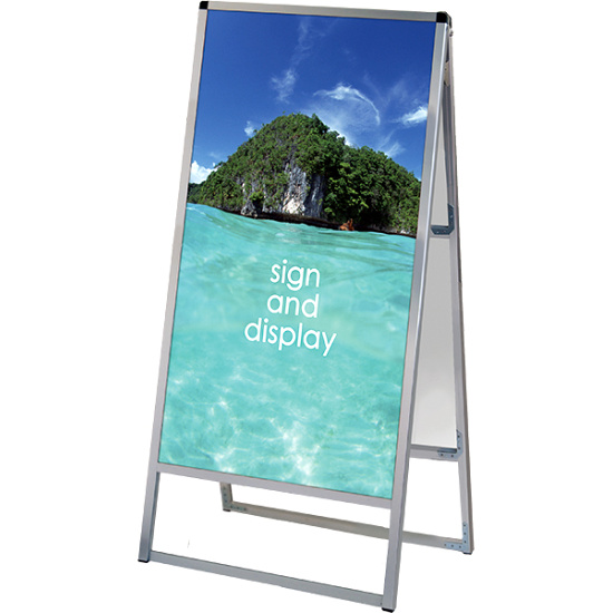 - フレーム幅が22mmと細くスッキリとして見栄えのスタンダードなA型看板。MADE IN JAPANの安心の日本製で耐久性も抜群。