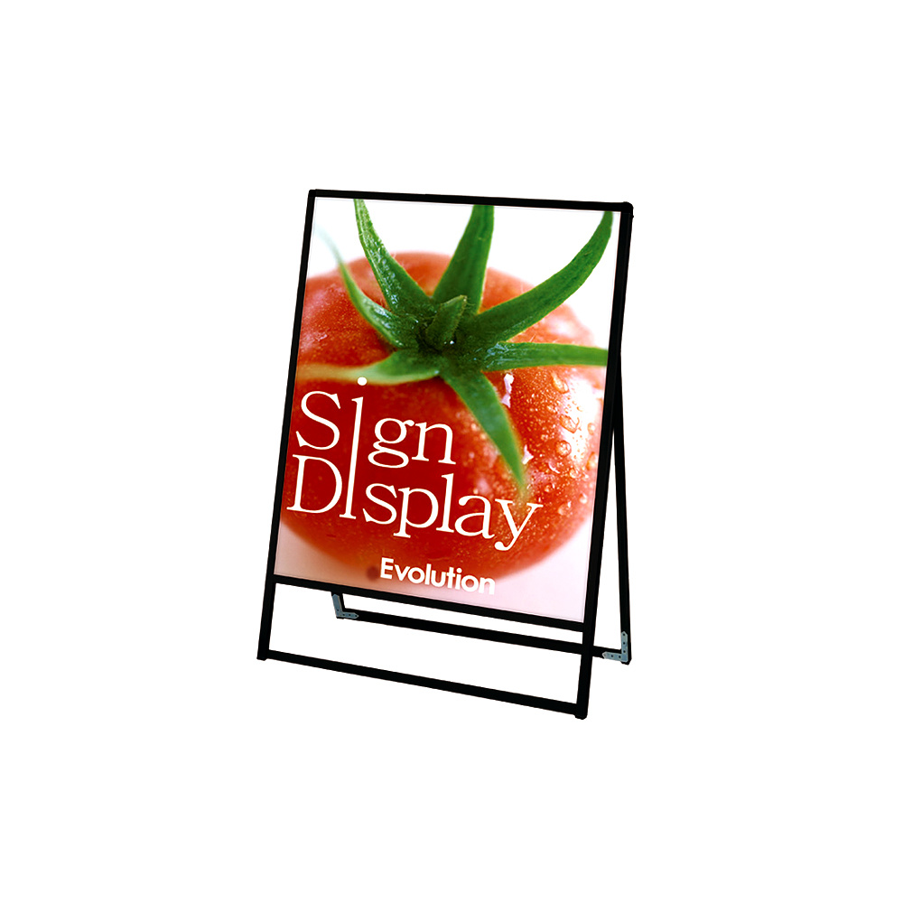 - フレーム幅が22mmと細くスッキリとして見栄えのスタンダードなA型看板。MADE IN JAPANの安心の日本製で耐久性も抜群。
