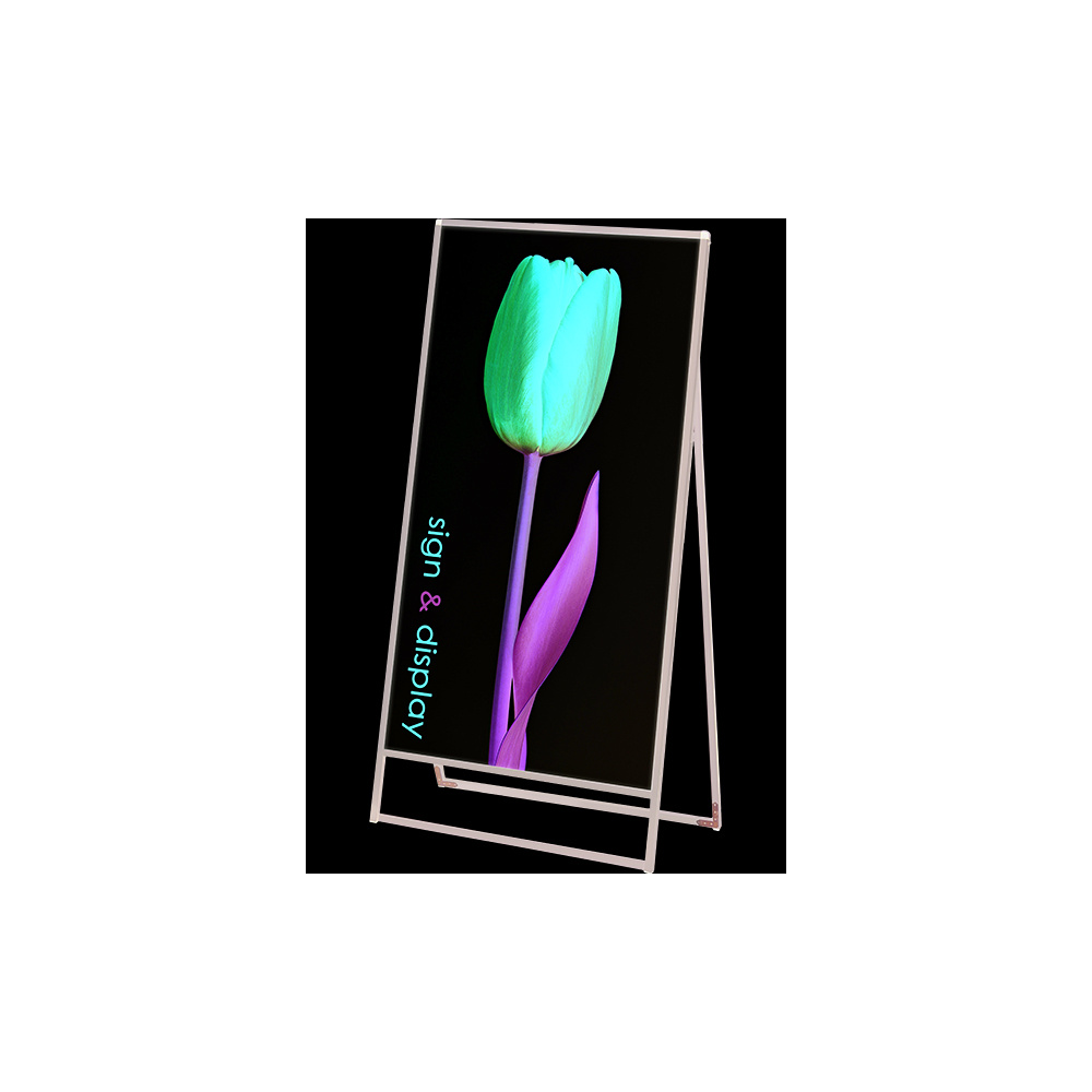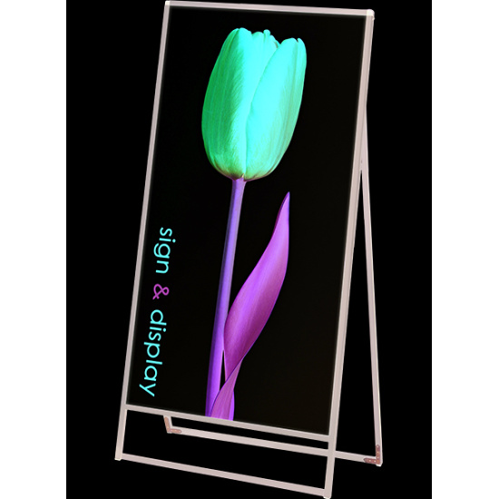 - フレーム幅が22mmと細くスッキリとして見栄えのスタンダードなA型看板。MADE IN JAPANの安心の日本製で耐久性も抜群。
