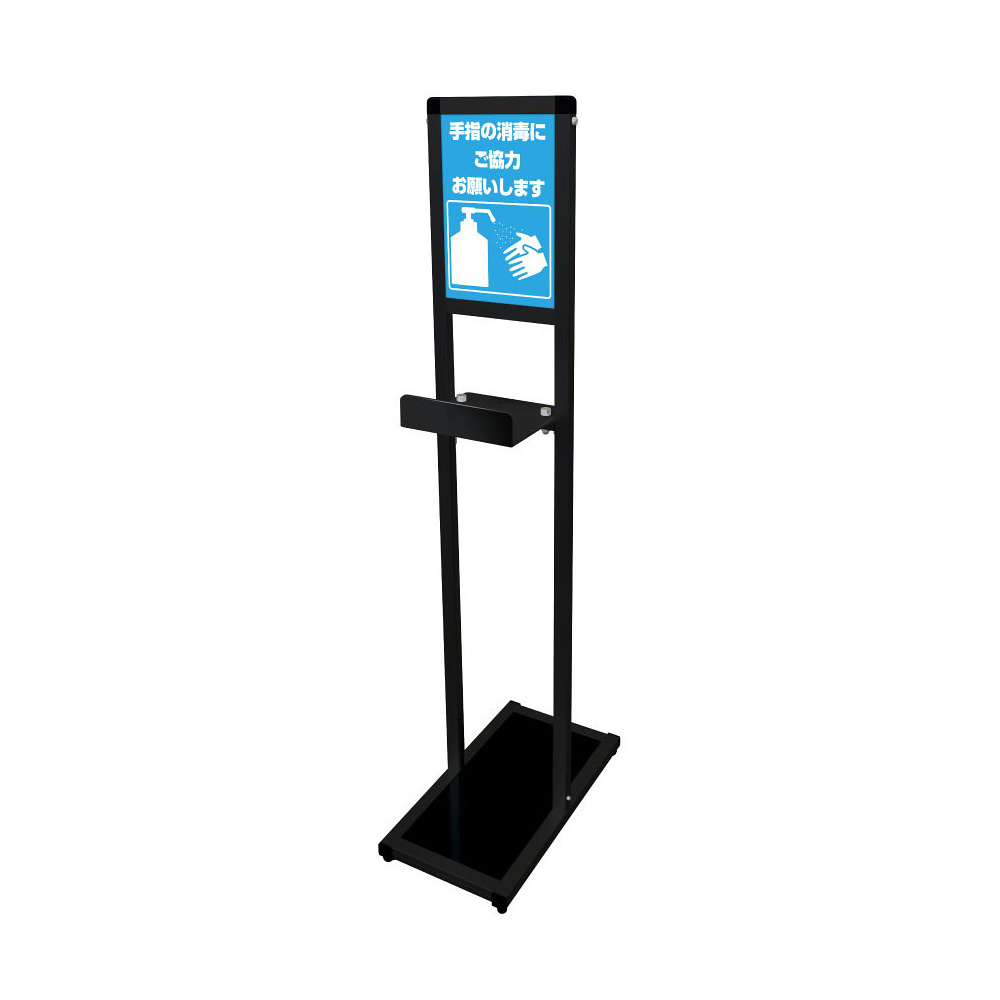 商品説明:アルコール消毒液ポンプスタンド A4サイズポスター付 (L型トレイ仕様) ブラック (LBTSSAC-A4T)