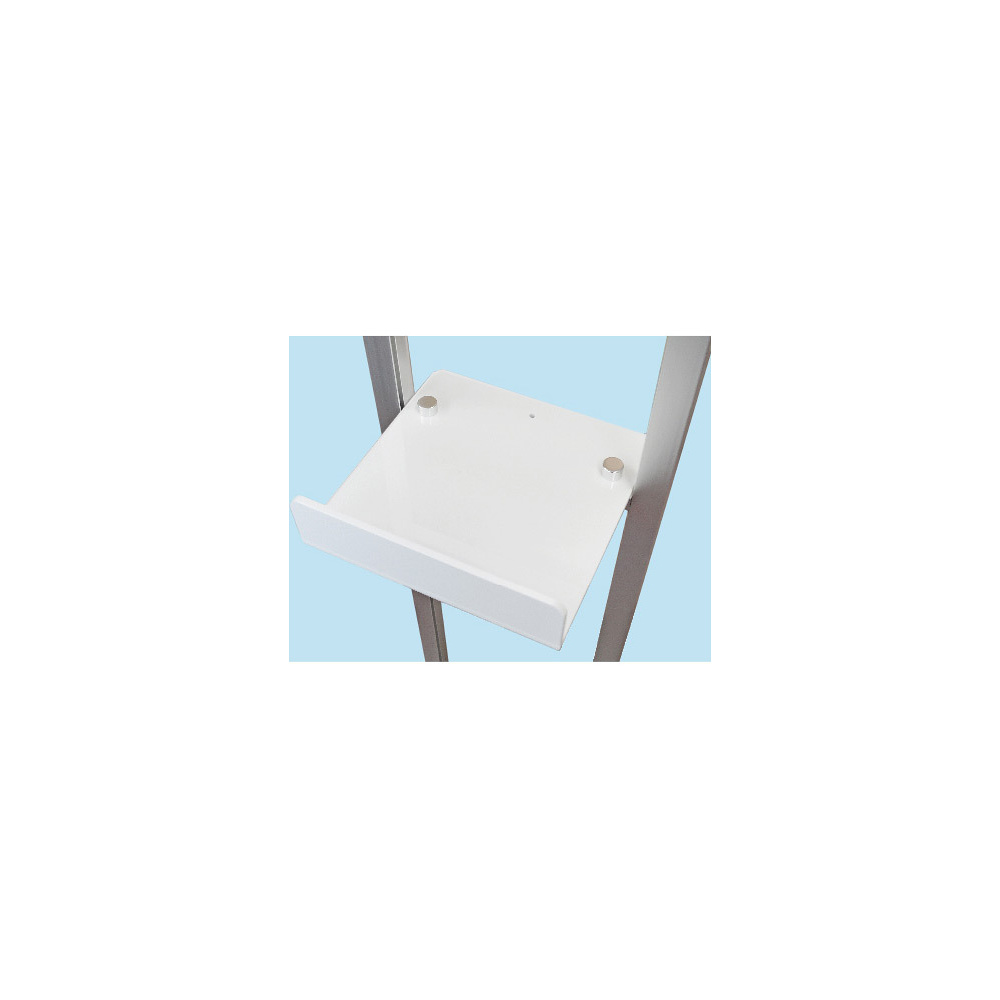 消毒液を置く台の手前部分かポスター下部分にでも、ちょっとメモやお知らせを足せるようなクリップかマグネット対応箇所があればもっと嬉しいです。 -