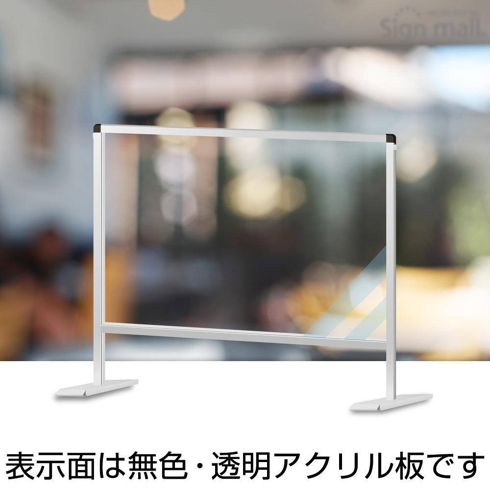 アクリル板をスリムなフレームで囲んだ飛沫感染防止パーティションスタンド