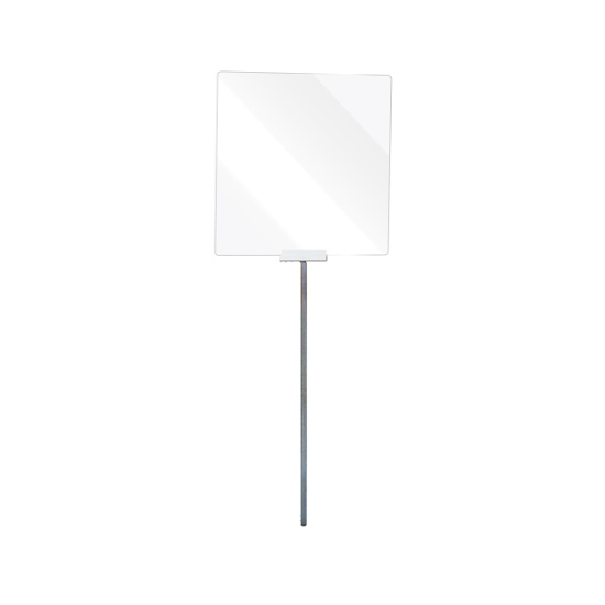 - ベースのない手持ちタイプは長さ(約)80cmのポールにアクリガードを取り付けたプラカードのような形状です。