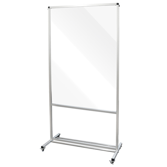 今現在、飛沫対策用に透明板が付属されておりますが、透明板をホワイトボードやアルミ複合板に交換すると大型告知板や看板としてご利用いただけます。ですので、コロナ収束後もぜひ、交換用のボードをお買い求めいただきまして引き続き、トールパーテーションを有効活用していただければ幸いです。