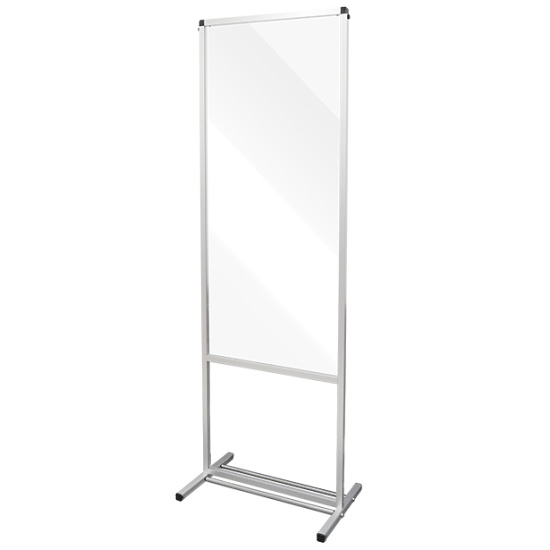 今現在、飛沫対策用に透明板が付属されておりますが、透明板をホワイトボードやアルミ複合板に交換すると大型告知板や看板としてご利用いただけます。ですので、コロナ収束後もぜひ、交換用のボードをお買い求めいただきまして引き続き、トールパーテーションを有効活用していただければ幸いです。