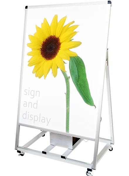 - 屋外対応のオリジナル長寿命バッテリーシステム搭載!高照度LED搭載で暗い所でもしっかりとポスターを美しく演出します。