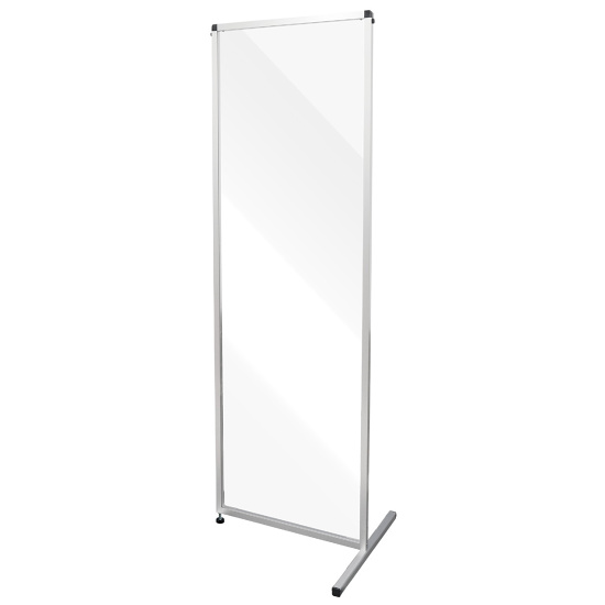 今現在、飛沫対策用に透明板が付属されておりますが、透明板をホワイトボードやアルミ複合板に交換すると大型告知板や看板としてご利用いただけます。ですので、コロナ収束後もぜひ、交換用のボードをお買い求めいただきまして引き続き、トールパーテーションを有効活用していただければ幸いです。