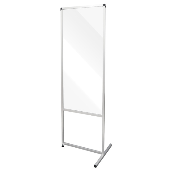 今現在、飛沫対策用に透明板が付属されておりますが、透明板をホワイトボードやアルミ複合板に交換すると大型告知板や看板としてご利用いただけます。ですので、コロナ収束後もぜひ、交換用のボードをお買い求めいただきまして引き続き、トールパーテーションを有効活用していただければ幸いです。