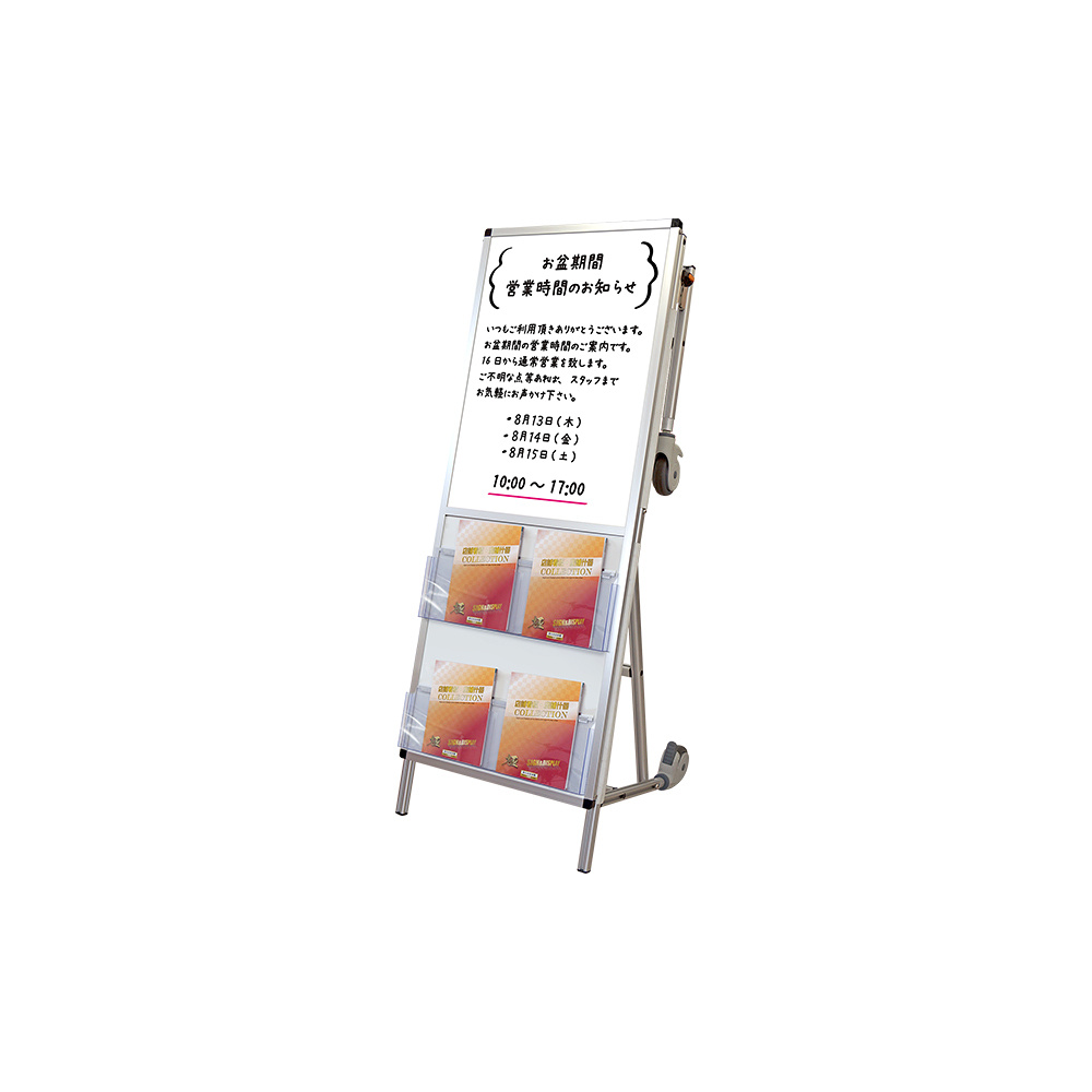 - 普段は、屋外用A型看板として駅やイベント会場 店舗前などの屋外看板として最適な看板が緊急時、ストレッチャーとして救護対象者を安全な場所まで搬送できます。背が低いショートタイプは、エレベーターも利用可能で小回りが効きます。
