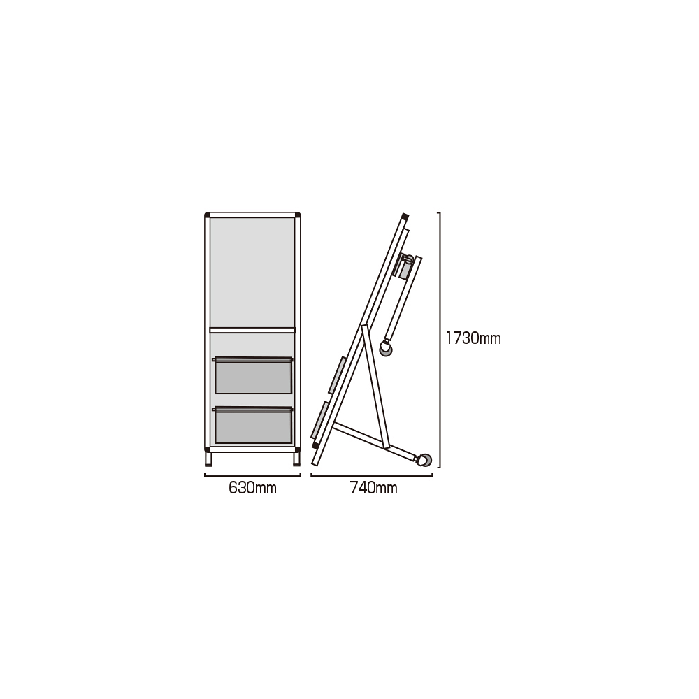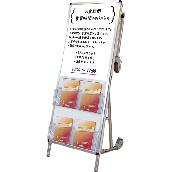 - ■ホワイトボードタイプ。水性マーカーで記入したり、マグネットでチラシを掲示できます。