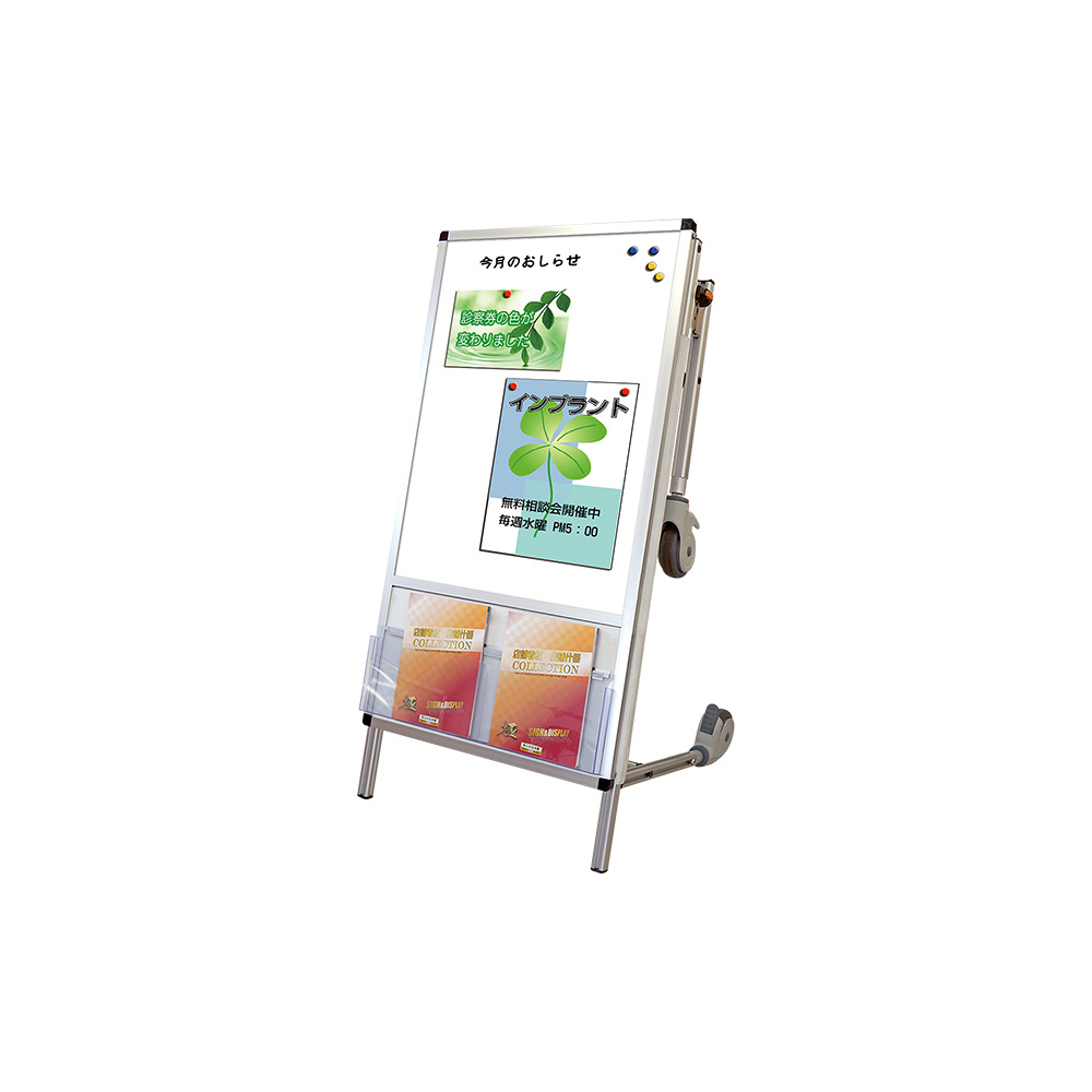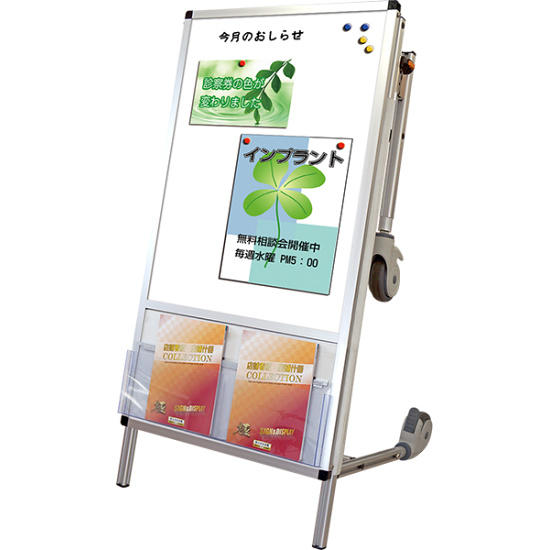 - ■ホワイトボードタイプ。水性マーカーで記入したり、マグネットでチラシを掲示できます。
