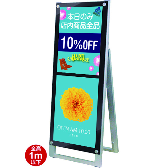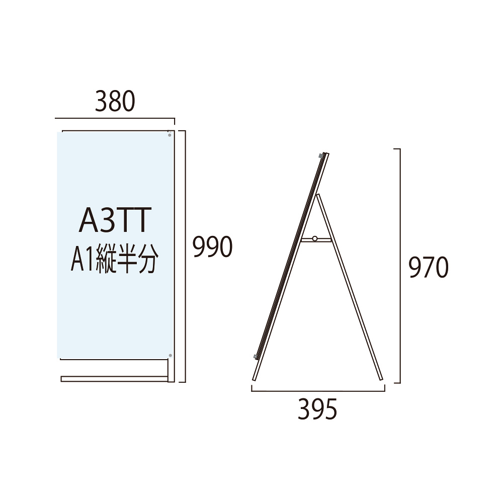 ポスター用スタンド看板 マグネジ A3縦縦 シルバー/ブラック 片面 (PSSKMN-A3TTKB)