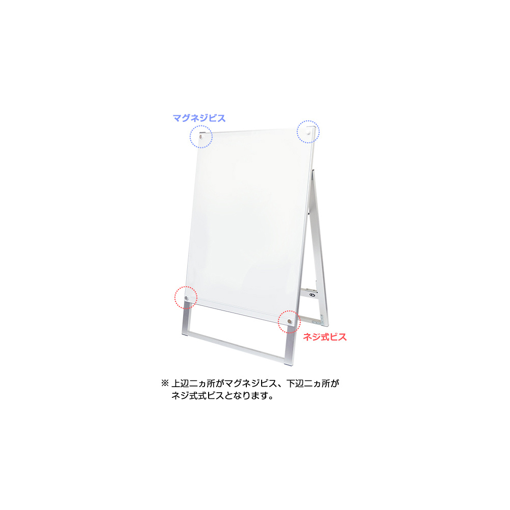 - マグネット+ネジ構造の化粧ビスとアンダーバー付のアクリルでポスター交換がとっても簡単。時短とコスト削減に貢献します。
