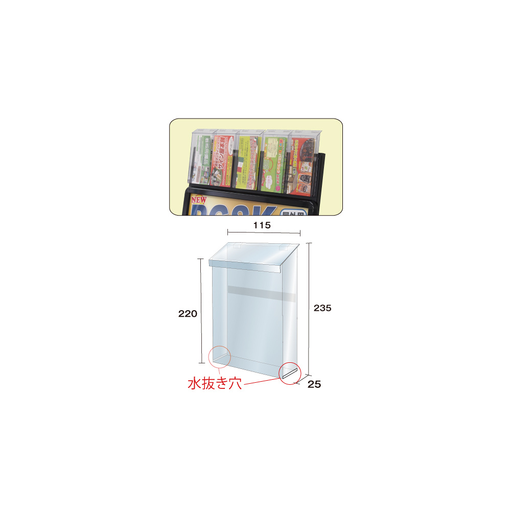 商品説明:PGSK看板専用 パンフレットケース単品 屋外用(フタあり) ブラック ( PGSKP-G-W115H(B))