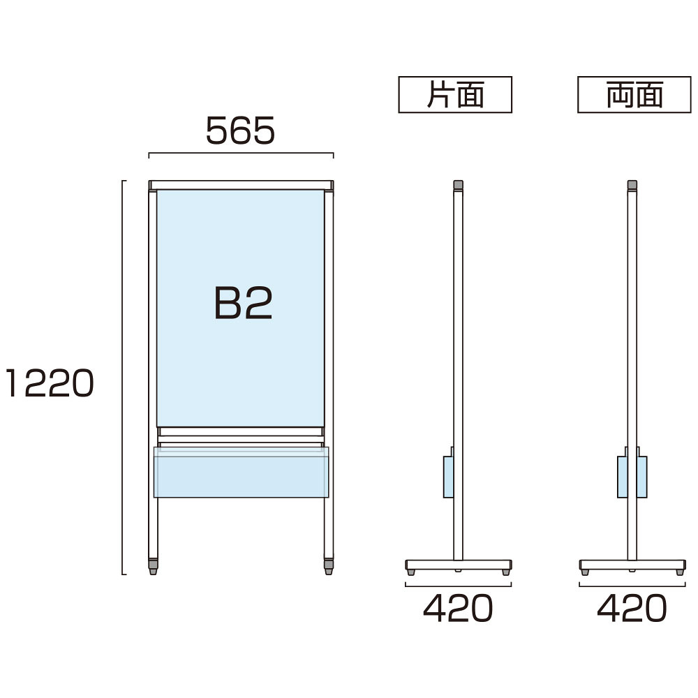 - どのポスターサイズも全高122cm目線に合う高さです。