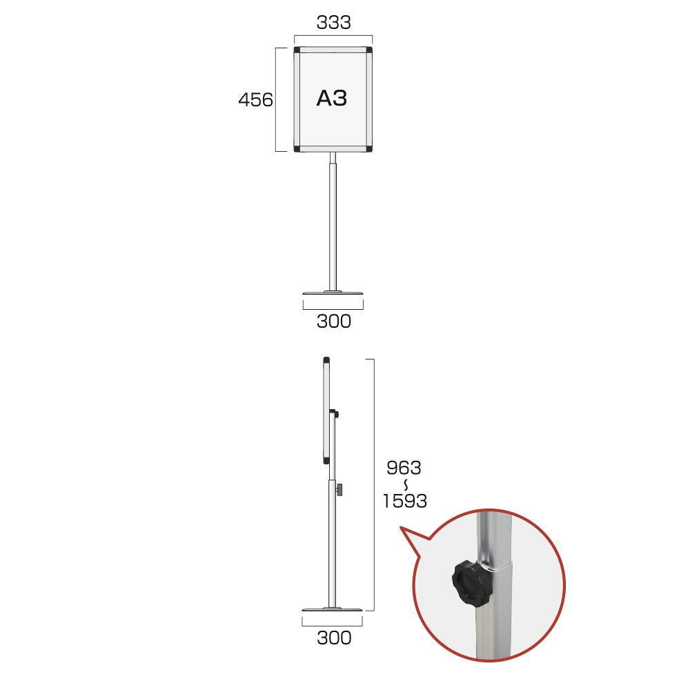 スマートバリウスパネルスタンド A3 シルバー スライドあり (SMVAPAS135-A3)