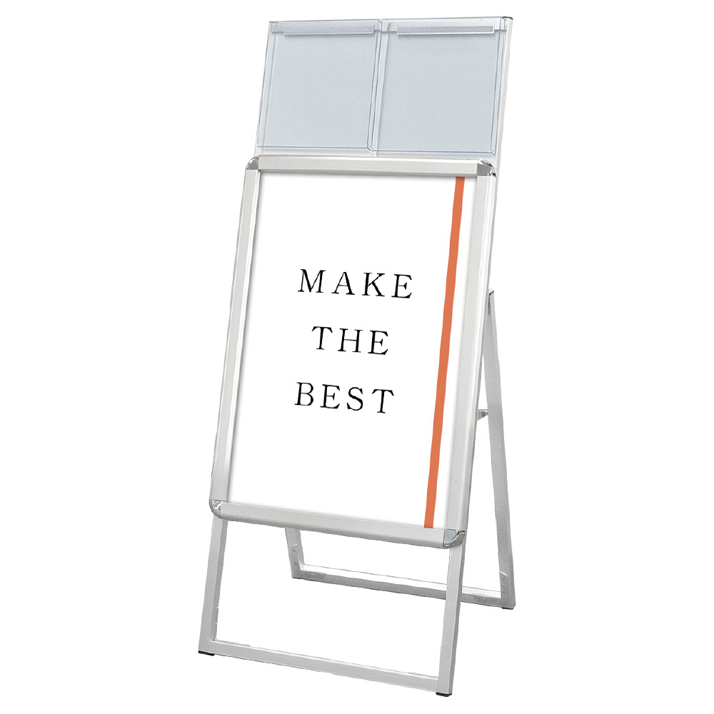 ポスター展示とA4カタログの配布を同時に行えるスタンド看板