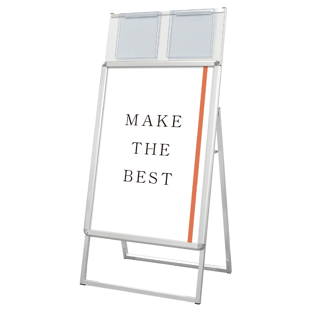 ポスター展示とA4カタログの配布を同時に行えるスタンド看板