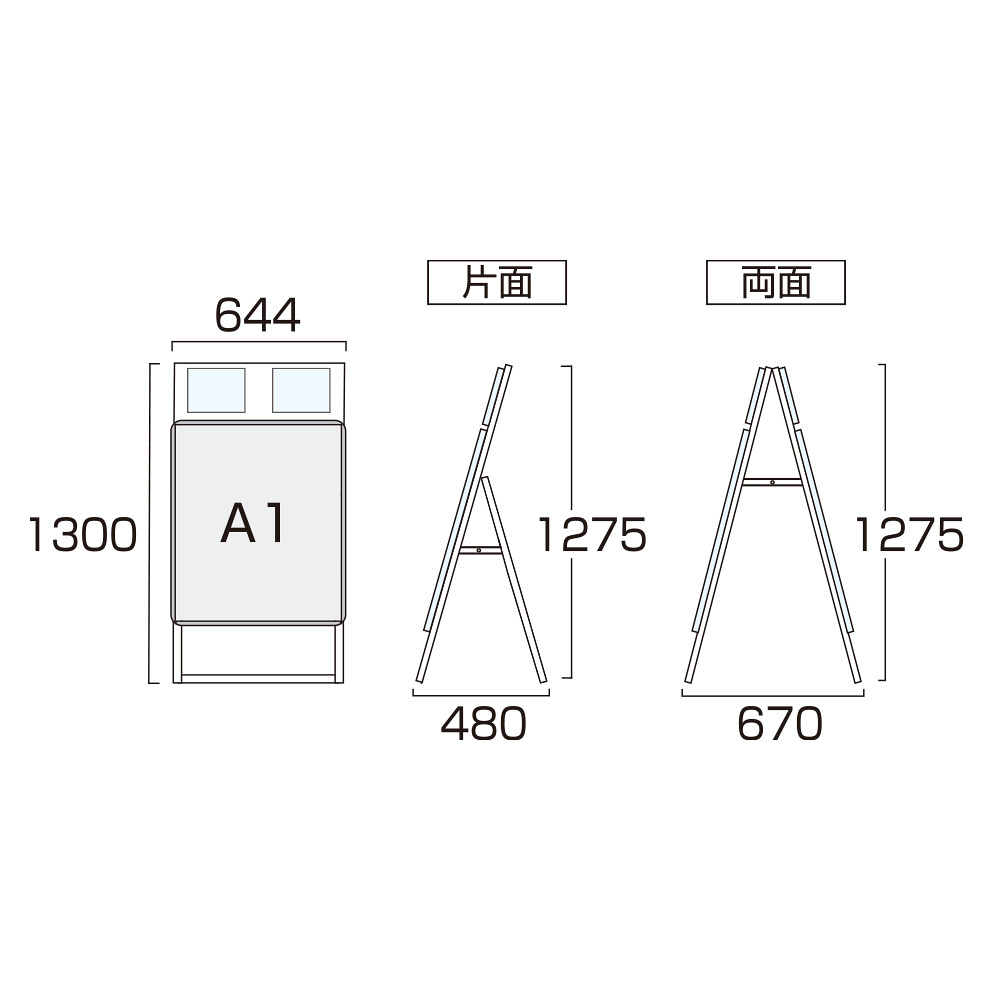 ポスターグリップスタンド看板カタログケース付 両面 A1 ブラック 屋内用 (PGSKK-A1RB)