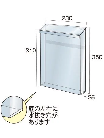 - 内寸:約W221×H306×D21mm カタログケース6個付(フタ有)※底の左右に水抜き穴があります。