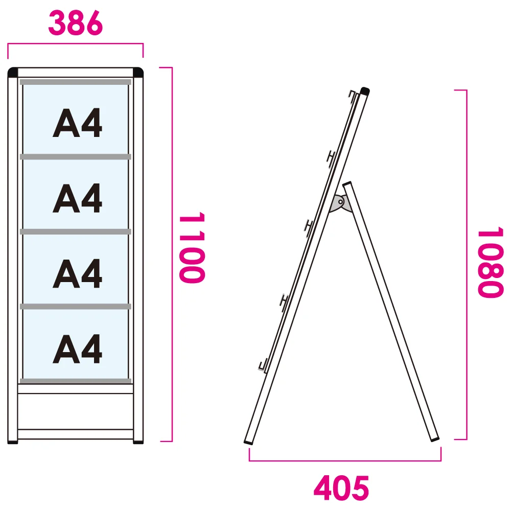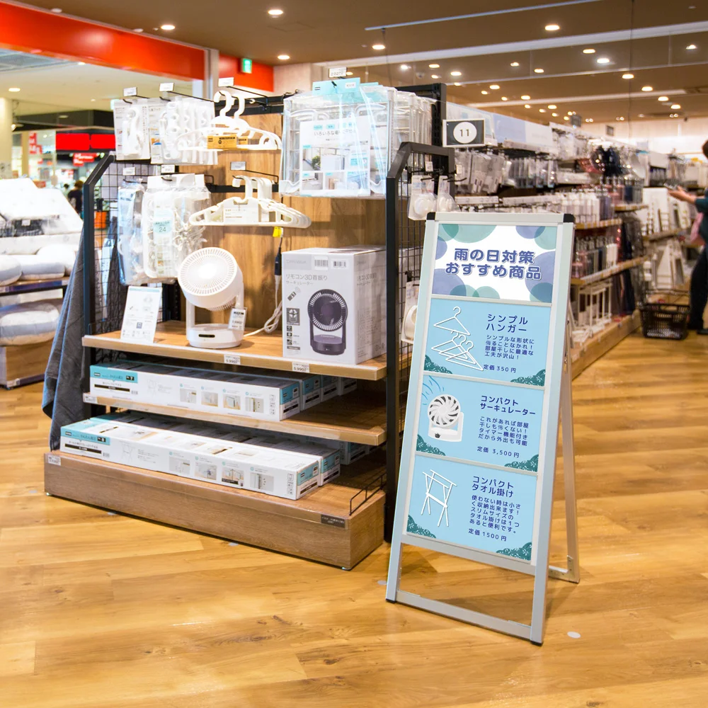 - A4(A3※商品により異なります)サイズのポスターをカードケースに入れて展示できるスタンド看板。