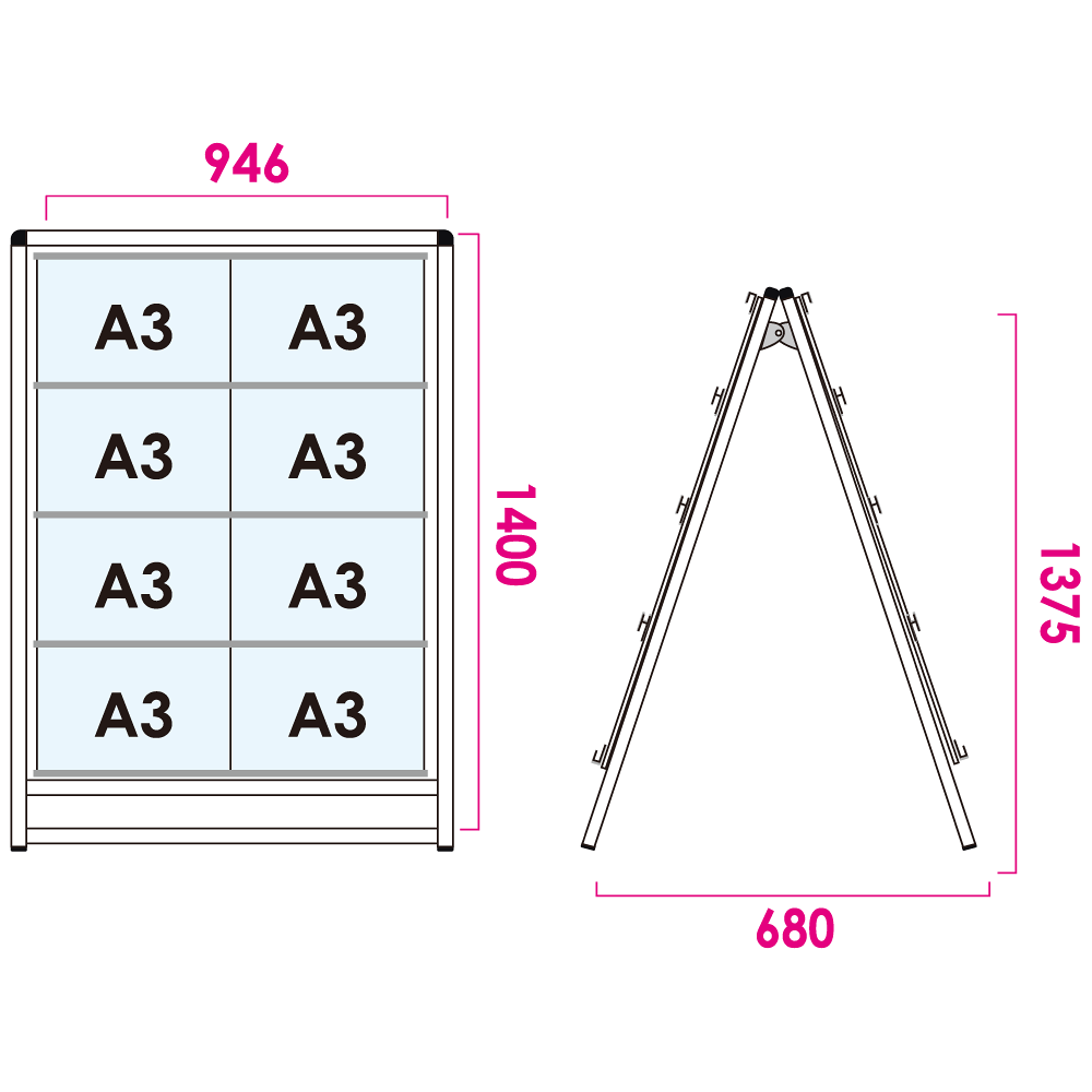 - A4(A3※商品により異なります)サイズのポスターをカードケースに入れて展示できるスタンド看板。