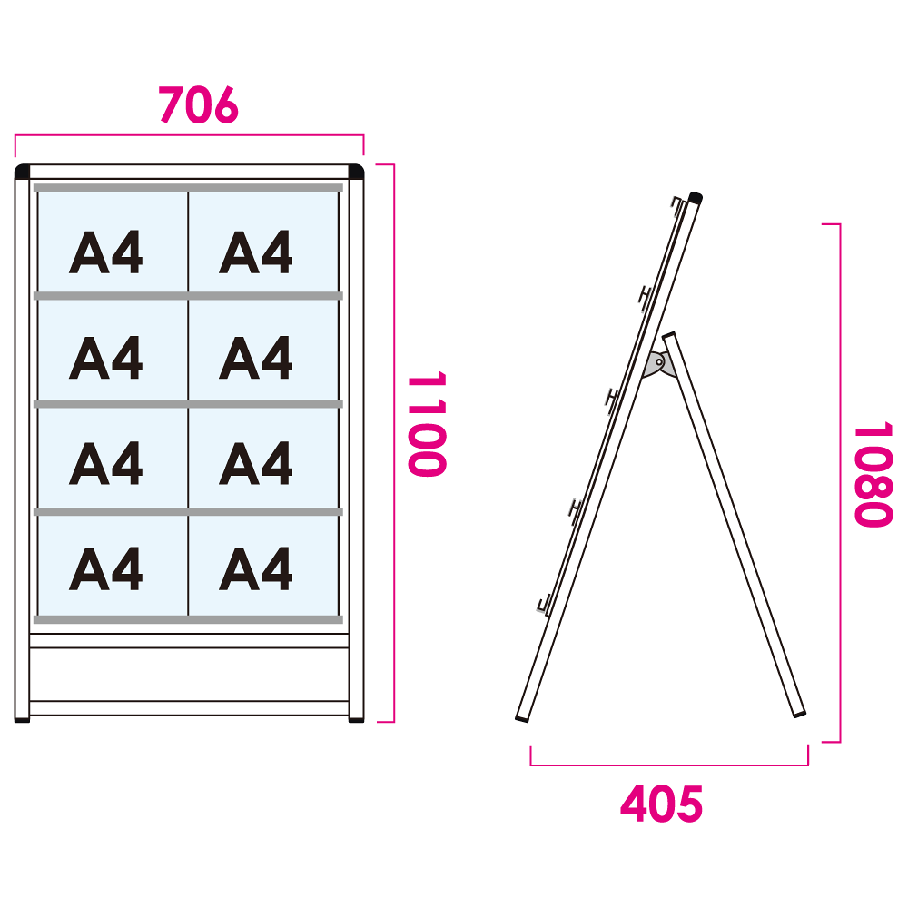 - A4(A3※商品により異なります)サイズのポスターをカードケースに入れて展示できるスタンド看板。