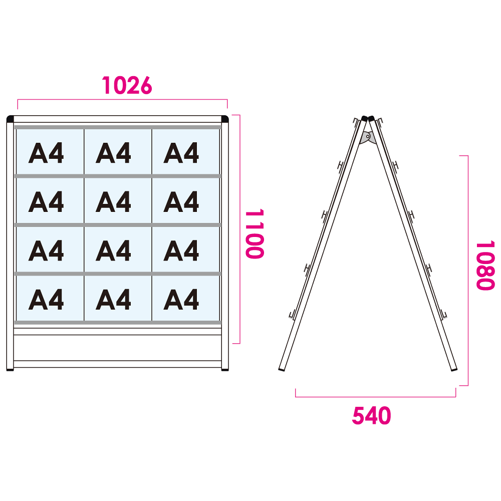 - A4(A3※商品により異なります)サイズのポスターをカードケースに入れて展示できるスタンド看板。