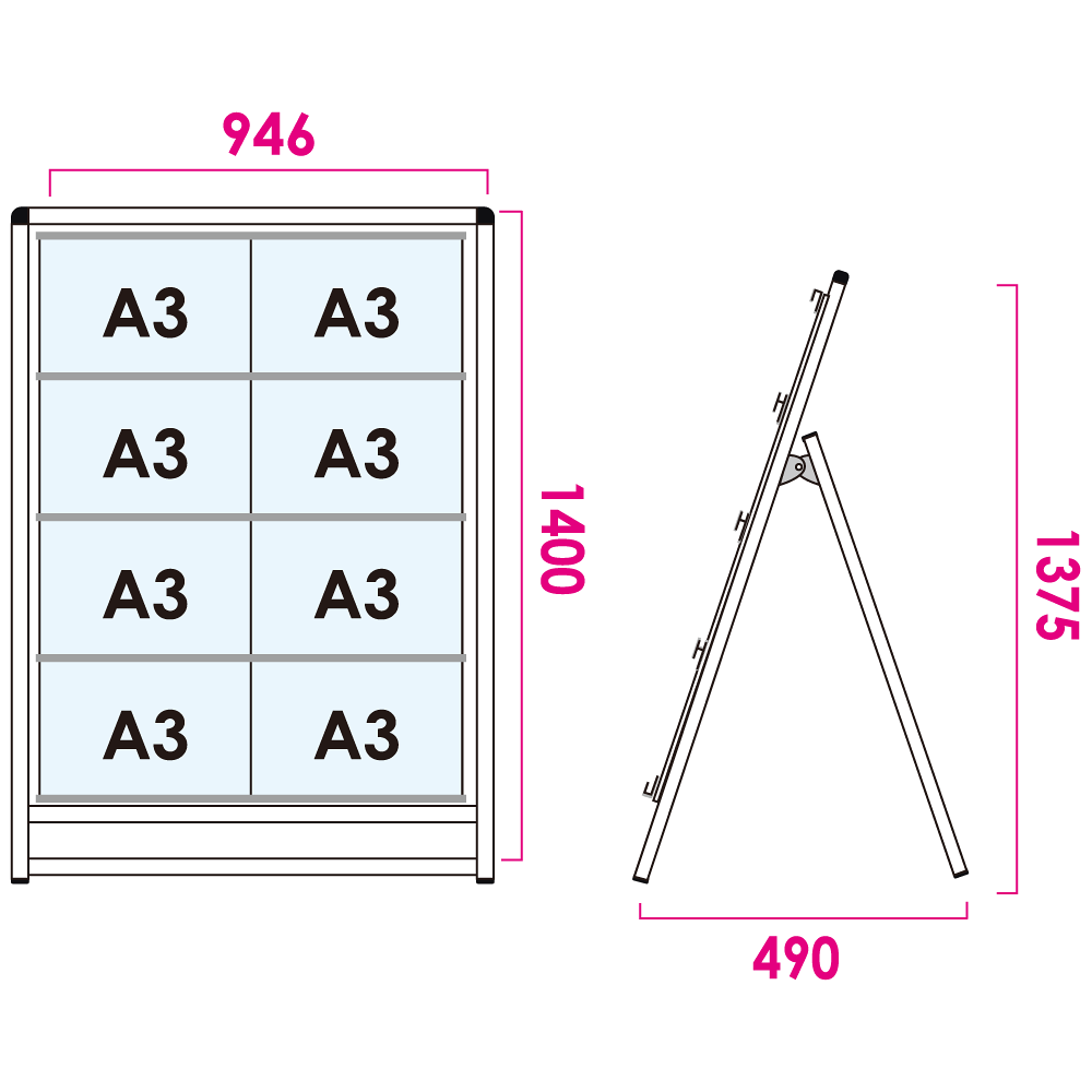 - A4(A3※商品により異なります)サイズのポスターをカードケースに入れて展示できるスタンド看板。