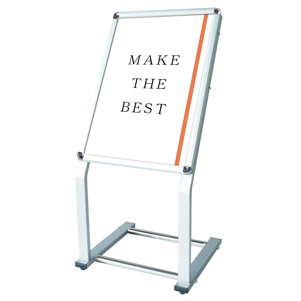 - 脚部がカーブしたスタイリッシュなデザインのポスタースタンドですが、最大B1サイズまで展示できる大型サイズもラインナップしています。