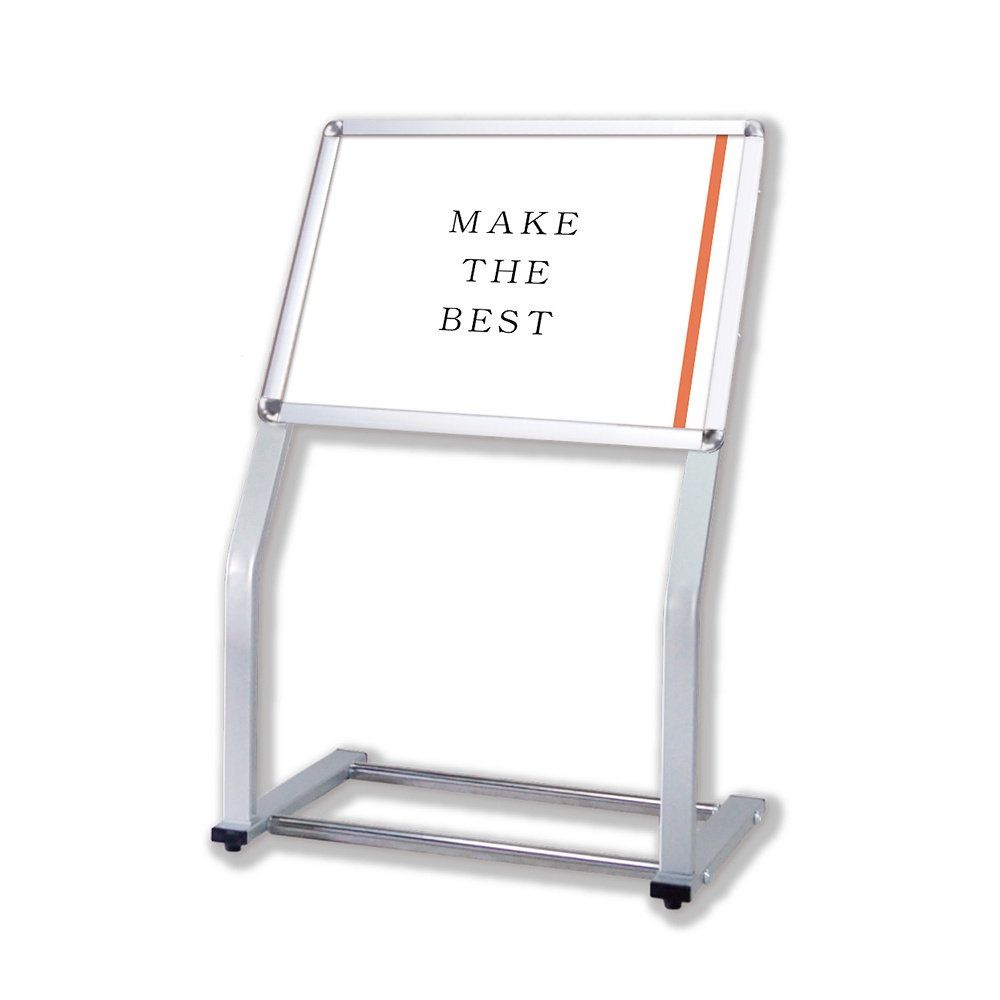 - 脚部がカーブしたスタイリッシュなデザインのポスタースタンドですが、最大B1サイズまで展示できる大型サイズもラインナップしています。